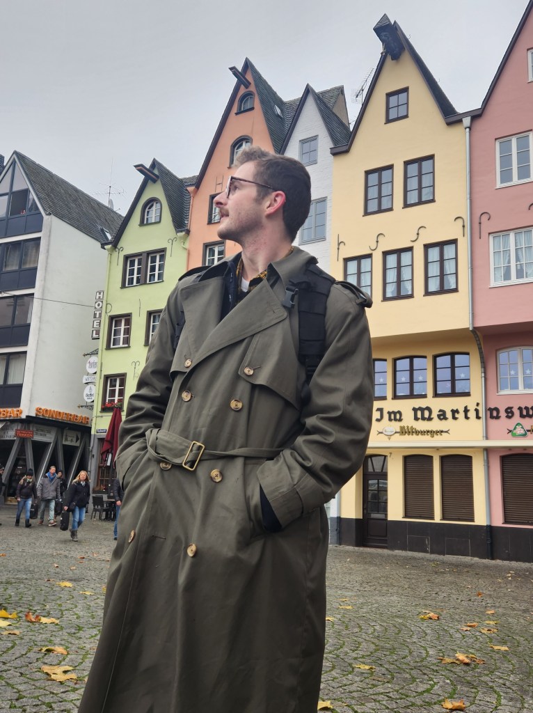 At this point, my plan had ended. But the night was still young. So we decided to walk around and explore more of the streets. We found several Christmas markets which were beautiful. The 1st one we went to was angel-themed. Interestingly, they had hot cocktails to include Ukrainian mules, of course, William and I tried them. Continuing to walk around, we also found a very Edwardian or Victorian Christmas market. Men and top hats running around, absent being sold, and even a glögg house in a pretend stave church. Our 3rd Christmas market was located in the shadow of Cologne cathedral. While the music was terrific, we didn’t stay long because it was so crowded.